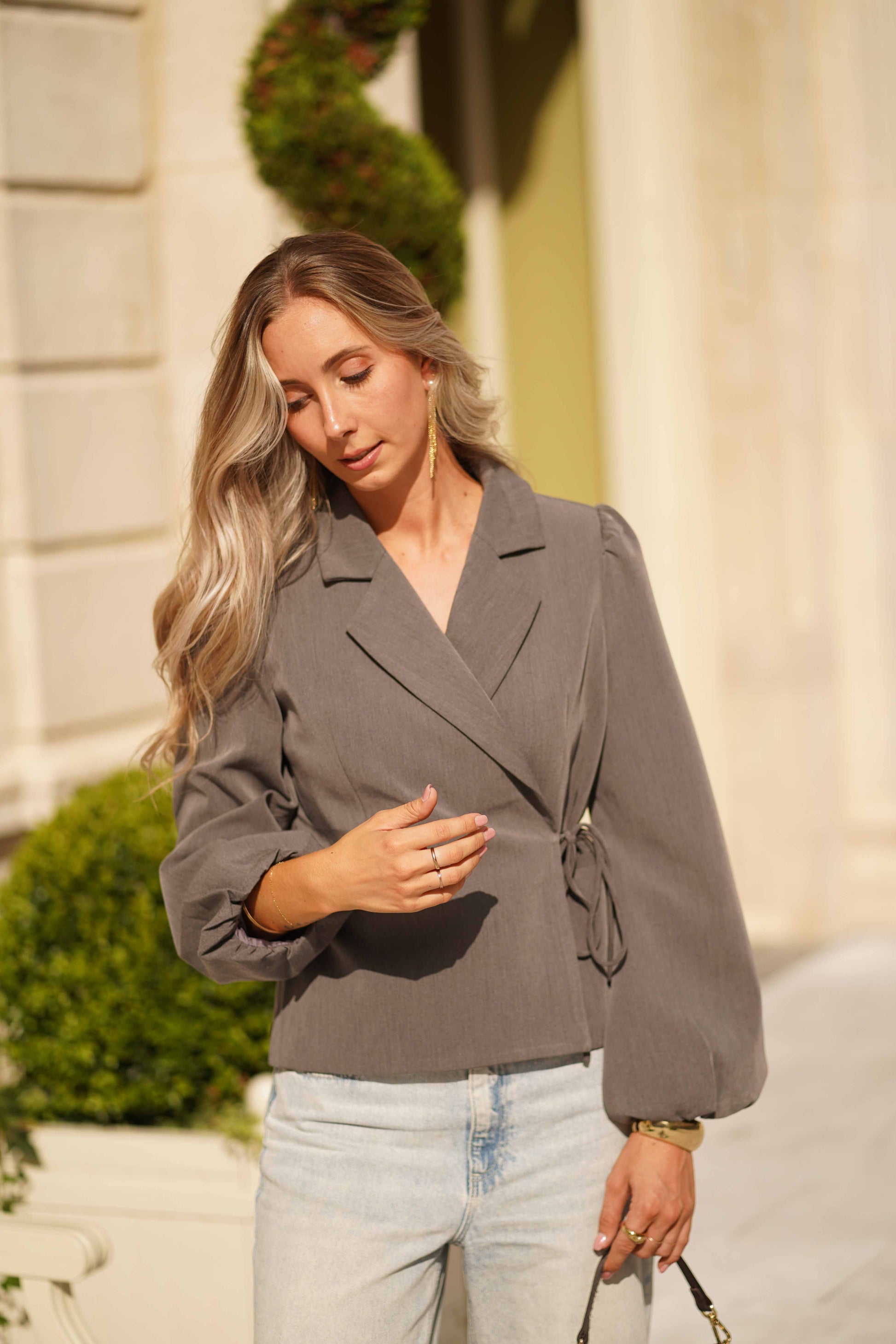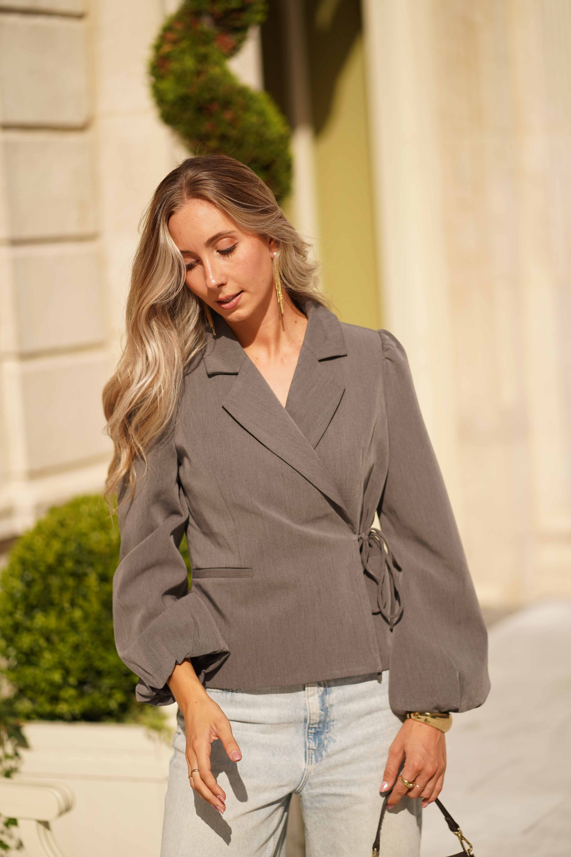 Blazer gris, court et noué